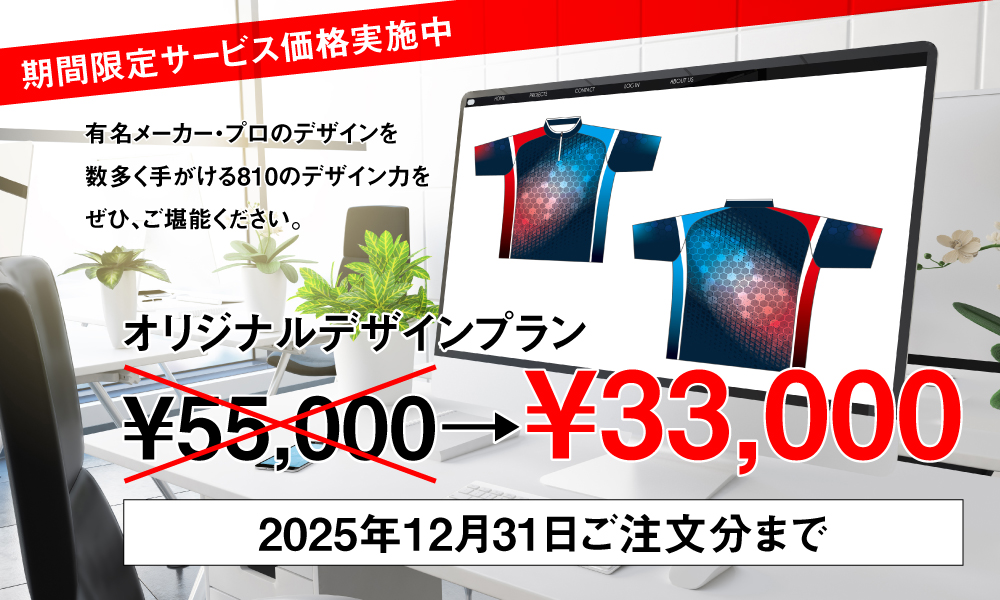 - 長引くコロナ不況の影響に耐え、好景気時の価格やシステムを継続してまいりましたが、企業努力も限界に達し1年間悩んだ末に、皆様のご依頼が落ちついたこのタイミングで諸々変更させていただきました。 810は皆様のおかげで10年目を迎えることができました。さらに10年、皆様に勝負服(トーナメントシャツ)を提供し続けるために必要な決断だと思っております。 皆様にご不便ご迷惑をおかけする事となりますが、ご理解、ご協力のほど宜しくお願い申し上げます。 尚、810はご評価いただいておりますデザイン面を、もう一度強化して参りますので楽しみにしていてください。